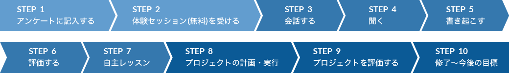 プログラムでは、以下の10ステップを一つずつ踏みながら、3つのフェーズ(段階)を体験します。